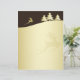 Elegant gold Christmas illustration featuring a golden silhouette of a reindeer and tree with Merry Christmas greeting on a brown background.