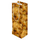 Elegant Christmas wine gift bag with a beautiful golden star ornament, bows, pearls, pine cones and sparkling Christmas lights pattern. See also: