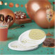 Contemporary design with golden paste in a circle partially cut and off centre on white background. Double modern lettering with a shadow effect obtained by superimposing the same lettering and shifting it slightly. Customisable Modern 40th Birthday Party Paper Plates. Matching Products: