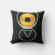Golden circle, square, triangle and stars on black background Throw Pillow. Elegant geometric shapes match with most environments.