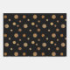 Golden Circles Polka Dots Geometric Black Wrapping Paper Sheets.