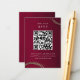 An elegant cocktail party invitation rsvp with QR code by Stacey Meacham featuring deep red textural background and gold cocktail rings. Perfect for business or personal events.