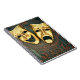 Golden comedy and tragedy masks on patterned leather | David Muir | AssetID: 72797344