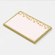 Golden confetti on light coral ivory colour background with golden frame Post-It Notes. Text "Time is Gold" can be personalised.