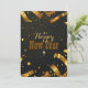 Featuring a dark background, it bursts with golden confetti and glitter pieces exploding outward, creating an energetic and festive vibe.