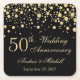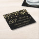 Elegant 50th Wedding Anniversary Paper coaster with golden confetti pattern on a black background