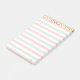 Golden confetti on pastel pink, white and mint striped background Post-It Notes. Fine text can be personalised.