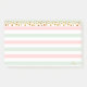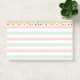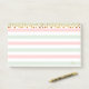 Golden confetti on pastel pink, white and mint striped background Post-It Notes. Fine text can be personalised.