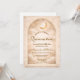 A luminous celestial design featuring delicate crescent moons and scattered constellation stars across a warm parchment background. A refined gold border frames the composition, while elegant script typography creates a graceful focal point worthy of such a meaningful milestone. The soft ivory and champagne tones give the entire piece a timeless, radiant glow. Perfect for a quinceañera celebration that feels romantic, elevated, and touched by starlight.