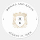 Golden Crest | Elegant Black and White Wedding Classic Round Sticker