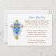 A beautiful flat card memorial keepsake for funerals, celebration of life gatherings or to send to friends and family in honor of someone they lost. You can add a photo in the personalized area and the life story of your loved one. The back has a religious poem for comfort to remind you your loved one is in God's arms now. The accent colors used are blue and gold. There is a golden cross with blue flowers on it too.