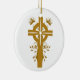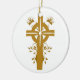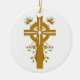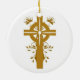 A beautiful golden floral cross round ceramic ornament. Featuring a lovely golden cross with floral accents on a white background, on both sides. A wonderful gift item for family and friends, members of your church, priest, anyone in your spiritual or religious community. It is also a lovely favour for a First Holy communion, or sacramental party celebration. This design is also available in our shop on matching invitations, stamps, table number cards, seating cards, gift items and more! Please visit our shop for other religious, spiritual, and party celebration items.