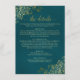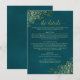 This beautiful enclosure card is designed to provide your guests with additional information on the reception, accommodations, travel arrangements, registry, website, directions, or any other specifics that your guests might require. Features a simply yet elegant dark teal and gold design with a lacy script calligraphy title, and frilly golden faux foil curls and swirls in the corners.