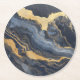 Golden Dark Blue Marble Pattern Round Paper Coaster