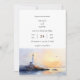 Capture the serene beauty of dawn with our "Watercolor Minimal Sunrise Glow" beach wedding invite card. This exquisite design features a picturesque lighthouse perched on a small, rocky outcrop, bathed in the soft, golden glow of the first light of dawn. The calm ocean reflects the warm colours of the sky, creating a tranquil and romantic backdrop for your special day. A lone seagull gracefully flies across the horizon, adding a touch of coastal charm and freedom to the scene.