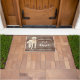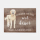 Funny beware of the wet kisser" Golden Doodle Dog door mat set on a rustic faux background. Visit our shop to view a large assortment of dog breads