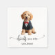 Infuse your wedding celebration with charm and a touch of humour with these delightful custom wedding napkins featuring an adorable Pug puppy in a tuxedo. The cute illustration of the Golden Doodle, dressed in a tuxedo complete with a red bow tie, is paired with the playful custom text "drinks on me" and "Love, Bruno." These napkins are perfect for adding a unique and personalised touch to your cocktail hour, reception, or any part of your special day.