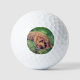 A golf ball with a cute image of a Golden Doodle. The background, image and text can be personalised. Original artwork by W.B.