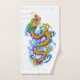 This towel has a detailed dragon in shades of gold, green, red and blue surrounded by splashes of blue water. You can change the background colour to match your team's colour by entering the personalise options. A great towel to dry off after a dragon boat race.