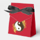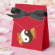 The design of a Yin Yang with two gold dragons is designed to be a combination of very powerful meanings and colours of red, gold, black and white.