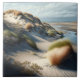 Golden Dunes: This photorealistic digital painting captures the tranquil beauty of the Dutch dunes at late afternoon. The fine sand dunes, sprinkled with patches of small grasses, stretch gracefully across the scene. In the foreground, a gentle stream of water flows toward the sea, adding a serene touch to the composition. The warm, golden light of the setting sun casts long, soft shadows over the landscape, enhancing the natural textures and creating a peaceful atmosphere. Perfect for nature lovers, this artwork brings the quiet elegance of the Netherlands' coastal beauty into your space.