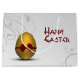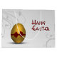 An elegant and modern Easter illustration featuring a golden Easter egg with a red bow with decorated floral swirl pattern illustration in professional classic white and gray color shades.