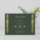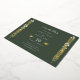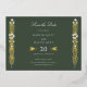 Begin the journey to your special day with this exquisite Art Nouveau Save the Date card, designed to enthral and announce your upcoming wedding with a touch of golden elegance. Set against a deep forest green backdrop, the card is adorned with a vertical column of white floral elements and gold foil leaves, symbolising longevity and prosperity. Each corner of the card is highlighted with gold foil accents, framing your announcement in a display of classic sophistication. The centre stage is given to the elegant script announcing the date and location of your event, with a promise of a formal invitation to follow. This Save the Date card is perfect for couples who appreciate the blend of nature's beauty, the sophistication of Art Nouveau, and the timeless allure of gold detailing.