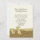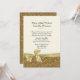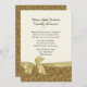 Elegant custom wedding invitation done in cream, with graphics of a gold on gold ornate swirl design, on the bottom, of the invitation and covering the back. Graphics of a satin looking golden tan ribbon and bow, runs across the bottom. Black text is fully customisable and ready to personalise for your special day. Matching products available.