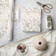 Elegant design features rich metallic style engraved gold mistletoe, holly and pine branches on white background. Pattern can be scaled. Coordinating tissue paper, ribbon, gift tags, gift bags and stickers available.