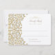 This RSVP Card for weddings exudes sophistication with its golden botanical tendrils and delicate white flowers on an elegant ivory background. Perfect for adding a touch of regal charm to your wedding correspondence, the card's design features an Art Nouveau-inspired pattern that intertwines gold and white in a dance of natural elegance. The back of the card maintains the theme with a clean and classic layout, providing space for guests to indicate their attendance with grace. These cards capture the enchantment of your upcoming special day, ensuring responses will be received in style.