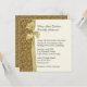 Elegant square custom wedding invitation done in cream, with graphics of a gold on gold ornate swirl design, on the left of the invitation and covering the back. Graphics of a satin looking golden tan ribbon and bow, runs down between the gold and cream backgrounds. Black text is fully customisable and ready to personalise for your special day. Matching products available.