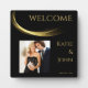Welcome your guests in style with our Personalised Golden Elegance Tabletop Welcome Sign, featuring your favourite photo. Add a personal touch by including your cherished picture, names and date, creating a warm and memorable greeting for your loved ones as they arrive at your special day.