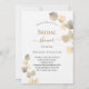 A white background decorated with golden eucalyptus sprigs. Personalize and the name of the bride to be and party details. Black and golden colored letters.