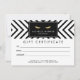 Coordinates with the Golden Eyelashes with Mod Black and White Pattern Business Card Template by 1201AM. An optical black and white pattern creates visual interest as a background on this customisable gift certificate template. This design features eyelashes in faux gold - perfect branding for eyelash extensions, makeup artists, cosmetic companies, lash bars and more. © 1201AM CREATIVE