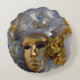 This design shows a mysterious carnival character wearing a white costume and a gilded mask. The Carnival of Venice, Italy, usually takes place each year in February or March.