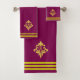 Golden Fleur de Lis, Three Stripes on Maroon Bath Towel Set