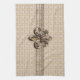 Golden Fleur De Lis with Cream Damask Pattern Tea Towel