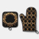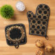 Beautiful Golden Floral Ornate Oven Mitt & Pot Holder Set