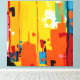 An expressive abstract artwork dominated by shades of orange and yellow, featuring dynamic brushstrokes and dripping paint. The fluid movement and bold colour palette create a sense of energy and artistic spontaneity
