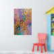 Flowers painted in gold on a background of pink, lilac, purple and turquoise.