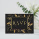 Golden Foliage | Elegant Gold Black Wedding RSVP Card