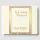 Golden frame with floral Pattern (like a woodcut) inspired by Arts and Crafts. Customisable Elegant Vintage Funeral Guest Book. You can easily change background colour and text (colour, font, size and position) by clicking the customise button. Availablein spiral notebook. Matching Memorial service invitation.