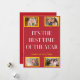 Celebrate the season with a festive holiday design featuring four cherished photos outlined in shimmering gold. A snowy red background sets the stage for bold white lettering that declares “It’s the Best Time of the Year”, accented with a smaller golden message of “Wishing You Joy and Cheer.” The back continues the warmth with “Merry Christmas! Warm wishes to you and your family throughout this holiday season” in elegant dancing script with a golden drop shadow. Finished with a classic family name line in Playfair Display, this design blends timeless holiday colors, heartfelt greetings, and treasured memories into one joyful keepsake.