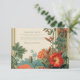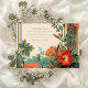A striking wedding design framed by a golden vintage border and adorned with a lush cascade of summer florals in shades of red, orange, and peach. Inspired by classic botanical illustrations and ornate 19th-century styling, this piece blends elegance and natural vibrance—perfect for a garden or outdoor celebration with timeless flair.