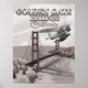 Golden Gate Bridge California vintage travel cartoon - Los Angeles cartoon of the famous bridge and a sea plane plying overhead. sepia exclusive version.