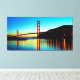 Scrumptious colours in shades of blue, turquoise, red and yellow glow on this canvas of Golden Gate Bridge at sunset. One of the USA's most iconic locations in San Francisco, California, will be a wonderful, colourful addition to your wall in your home or office. This canvas art is perfect if your enjoy beautiful photographs, or recalling memories of visiting exotic landmarks in your travels, or perhaps tucked into a golden dream on your bucket list.