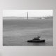 Golden Gate Bridge, Tug Boat, Black and white Poster