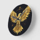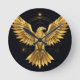 A stunning image of a golden, intricately designed geometric eagle with outspread wings, positioned against an abstract dark background with mystical patterns. Ideal for themes of strength, power, and freedom.
