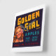 Vintage fruit crate label for Golden Girl brand apples from California.