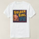 Golden Girl Apples is a vintage crate label from 1953. A pin-up girl with the words Golden Girl Apples next to it.